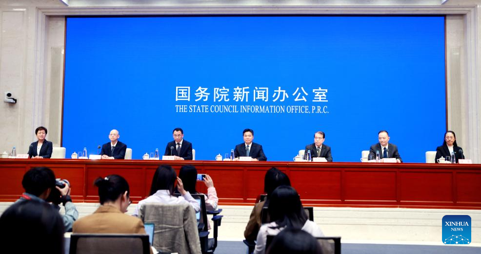A press conference on optimizing the departure tax refund policy to boost inbound consumption is held by the State Council Information Office in Beijing, capital of China, April 27, 2025. (Xinhua/Pan Xu)